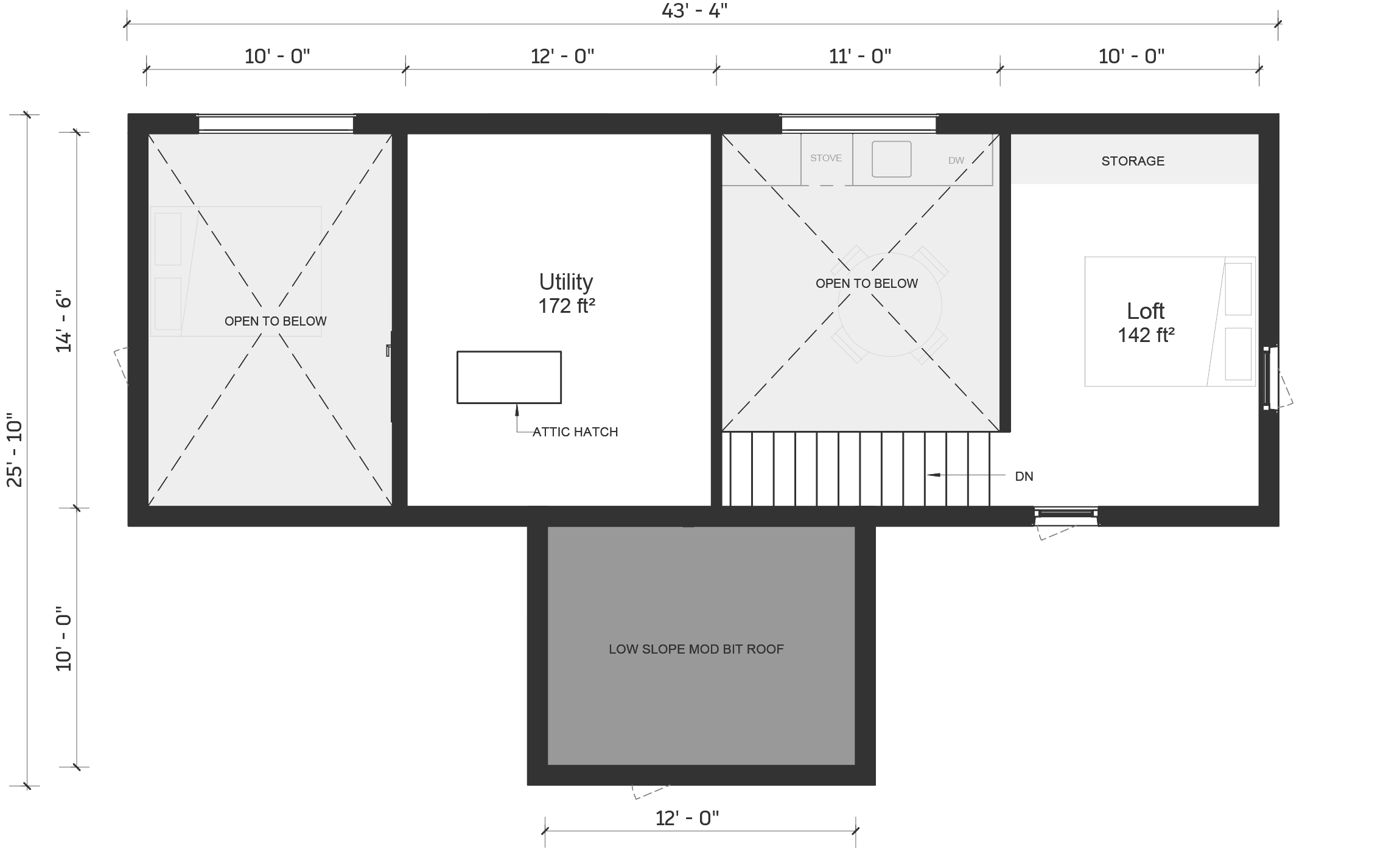 With three bedrooms, including a private loft, this spacious design offers ample living space for a family. The open-plan kitchen and living area make it a perfect home for multi-generational living.